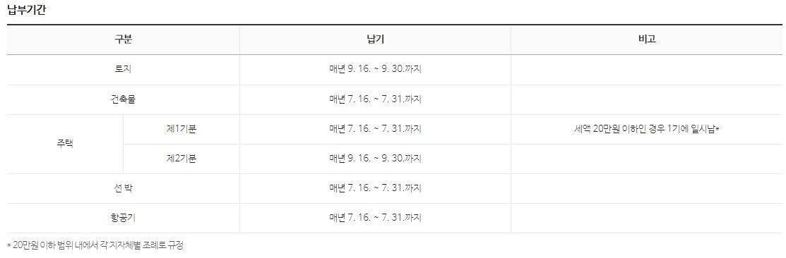 재산세 납부 기간은 재산의 종류에 따라 다르기 때문에 잘 확인하셔야 합니다. 항목별로 자세히 알아보겠습니다.